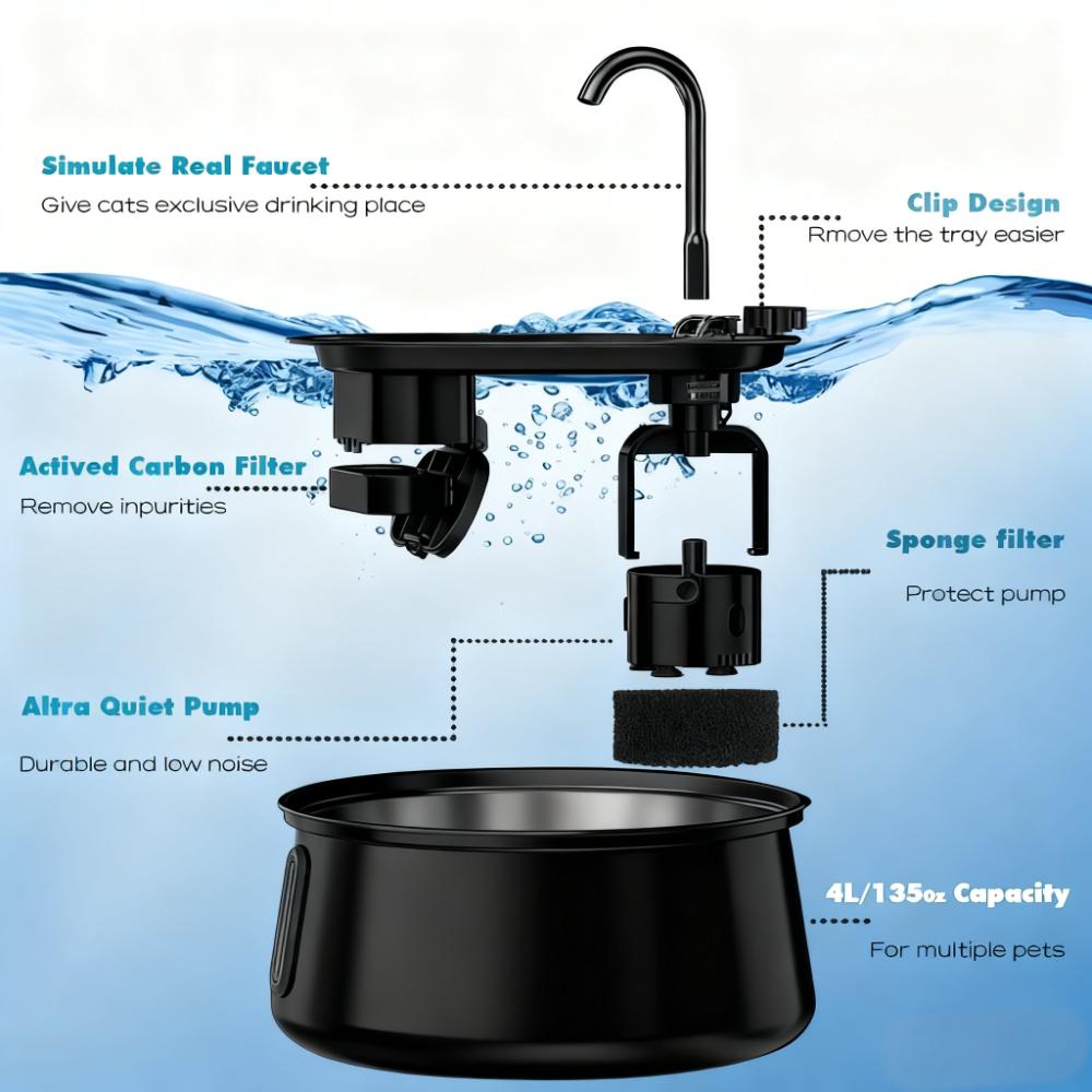 - Easy to Clean & Maintain: The clip design allows for quick removal of the tray, and all parts are detachable for hassle-free cleaning, making it simple to keep your fountain in top condition.