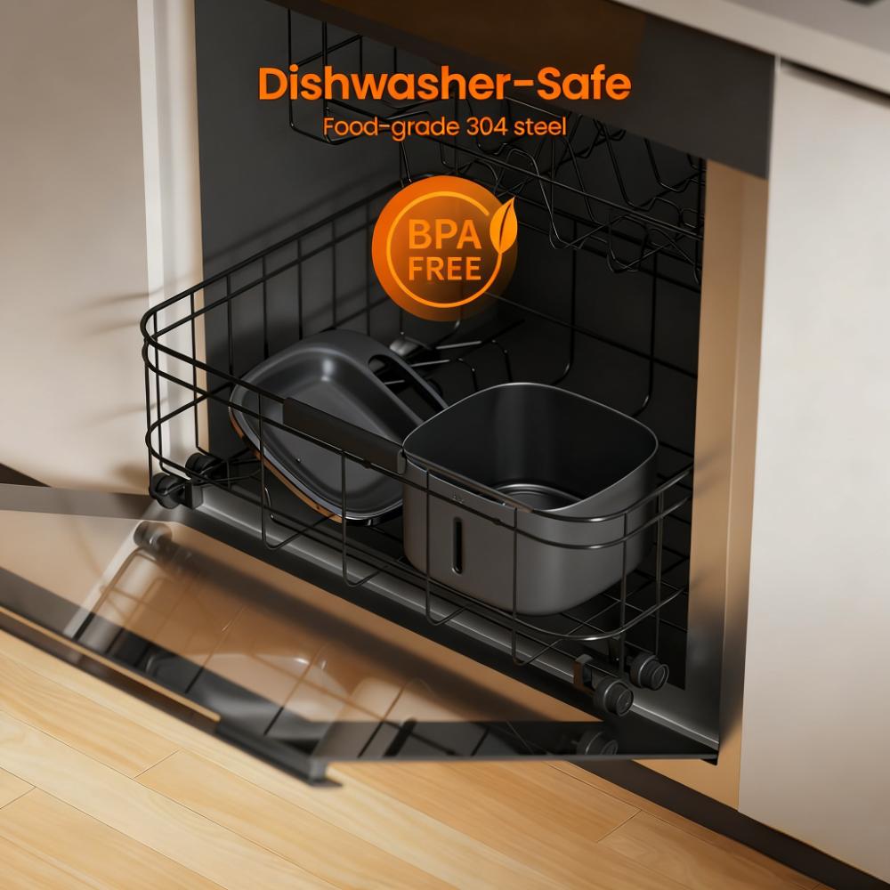 - Dishwasher-Safe & Easy to Clean: All detachable parts, including the stainless steel basin and filter tray, are dishwasher-safe, saving you time and effort on maintenance.